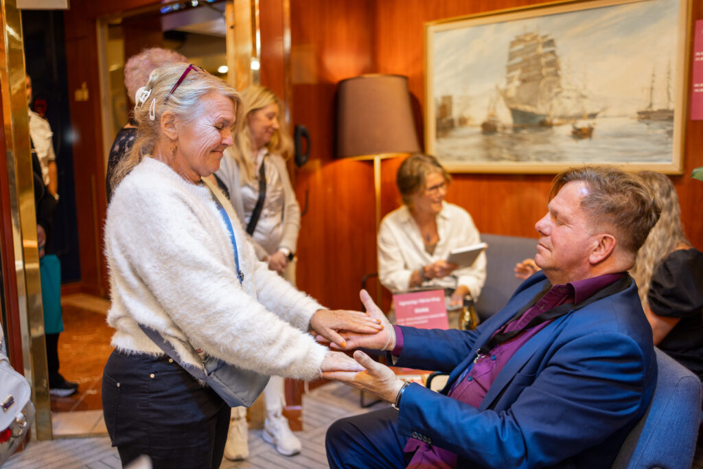 Anna-Lena håller föreläsningHealing med Benny i mässanBenny med vår fina läsareFrigörande dans med FridaMusik med Skånepågarna Dansa dig fri med FridaHärliga stunderMeditation i PanoramaFöreläsning med Helena-MagdalenaTanja med våra resenärerTanja DyredandTanja Dyredand i det fina vädretMindergyNäras shopShopping i mässanChefredaktör Paulina i mässanPaz By JuliaFina armband i mässanStorseans med ChristofferFöreläsning med Ewa2025 profiler ute på däckMånga intressanta samtalKramar ute på däckChristina och ChristofferBenny välkomnar ombordStorseans med BennyFina samtal i väntan på föreläsningSkål för god middagAnna föreläser i Backstage